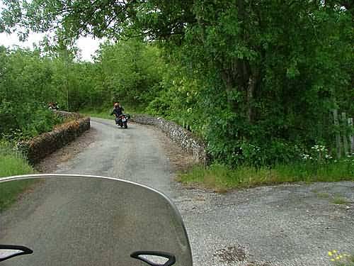 Noch beim Abladen der Moppeds erwachen bei Dirk Zweifel ob der Haltbarkeit seiner neuen zuhause aufgezogenen Reifen. Die 1700 km bis hier her haben den Pneus seiner Pan schon gehörig mehr zugesetzt als meinen. Von Bernds Karl-Dall ganz zu schweigen. Deren Reifen halten im Gegensatz zu unseren sowieso "ewig". Das Fahren mit "Spoiler" Heike fordert seinen Tribut.