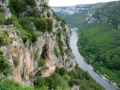 Vor Bidon biege ich zur Grotte de la Madeleine ab. Ein überwältigender Ausblick in Ardeche-Schlucht ist die Belohnung. Für einen Besuch in der Grotte ist jedoch keine Zeit. Aber es ist fantastisch, welchen Schlitz die Ardeche in den Fels gefräst hat.