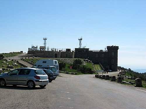 Die höchste Stelle erreichen wir am Mont Aigoual mit knapp 1600m. Der Wind bläst wie Hölle. Wir drehen die Moppeds lieber mit der schmalen Seite in den Wind. Eine Böe auf die Breitseite und das Ding könnte umfliegen. Das Thermometer meiner Pan zeigt eisige drei Grad! Bibber! Bibber!