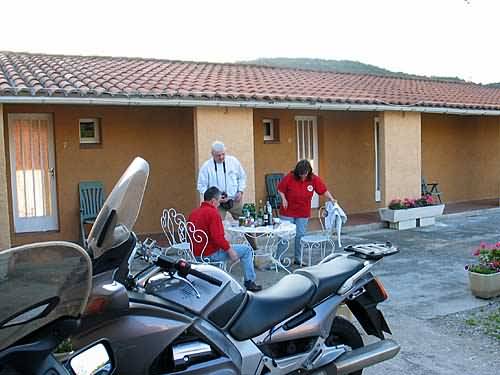 Dirk trauert schon den ganzen Tag seinem Reifenprofil nach, das zusehends verschwindet. Die Heimfahrt führt in der Nähe Carcassonnes vorbei. Es bestünde die Chance, hier dann einen neuen Satz aufziehen zu lassen. Also biegen wir gleich bei den ersten Häusern von Carcassonne rechts in ein Gewerbegebiet ein. Tatsächlich finden wir einen Reifenhändler. Nach einigem Chaos mit dem gegenseitigen Verständnis erfahren wir, dass es in diesem Außenlager keine Motorradreifen gibt, sondern nur im Geschäft in der Stadt. "Wie kommen wir dahin?", stellt sich sogleich die Frage. Da schickt einer den Jüngsten der Truppe als Guide mit seinem Roller voraus.