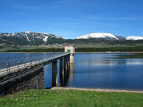 Stausee. Les Angles am anderen Ufer |
