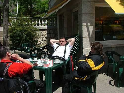 Hinter Planoles folgt der Abstieg nach Ripoll. In Berga legen wir eine Pause ein, freuen uns über die Spritpreise und versorgen uns in einem Lokal neben der Tanke mit Kaffee und Wasser. Die Reste vom "Buffet" gestern versorgen uns immer noch mit festen Nahrungsmitteln.