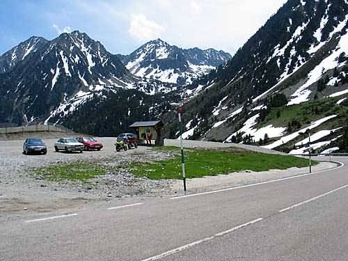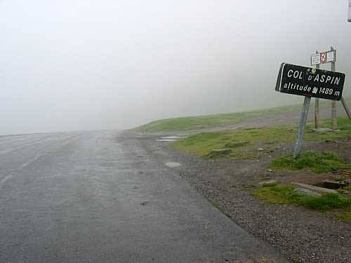 Auf dem Col de Aspin ist oberhalb von 450m alles im Nebel. Das Thermometer zeigt 10 Grad. Ein paar Hinweistafeln weisen auf einige gesperrte Pässe hin. Glücklicherweise keiner, den wir fahren wollen. In Bagnéres-de-Luchon fahren wir ein geraumes Stück auf der D618 in Richtung Bossòst, bis eine Tafel auf eine Sperrung des Col Du Portillion hinweist. Dadurch wird eine längere Umleitung über Cierp-Gaud erforderlich, die uns fast eine Stunde kostet. |